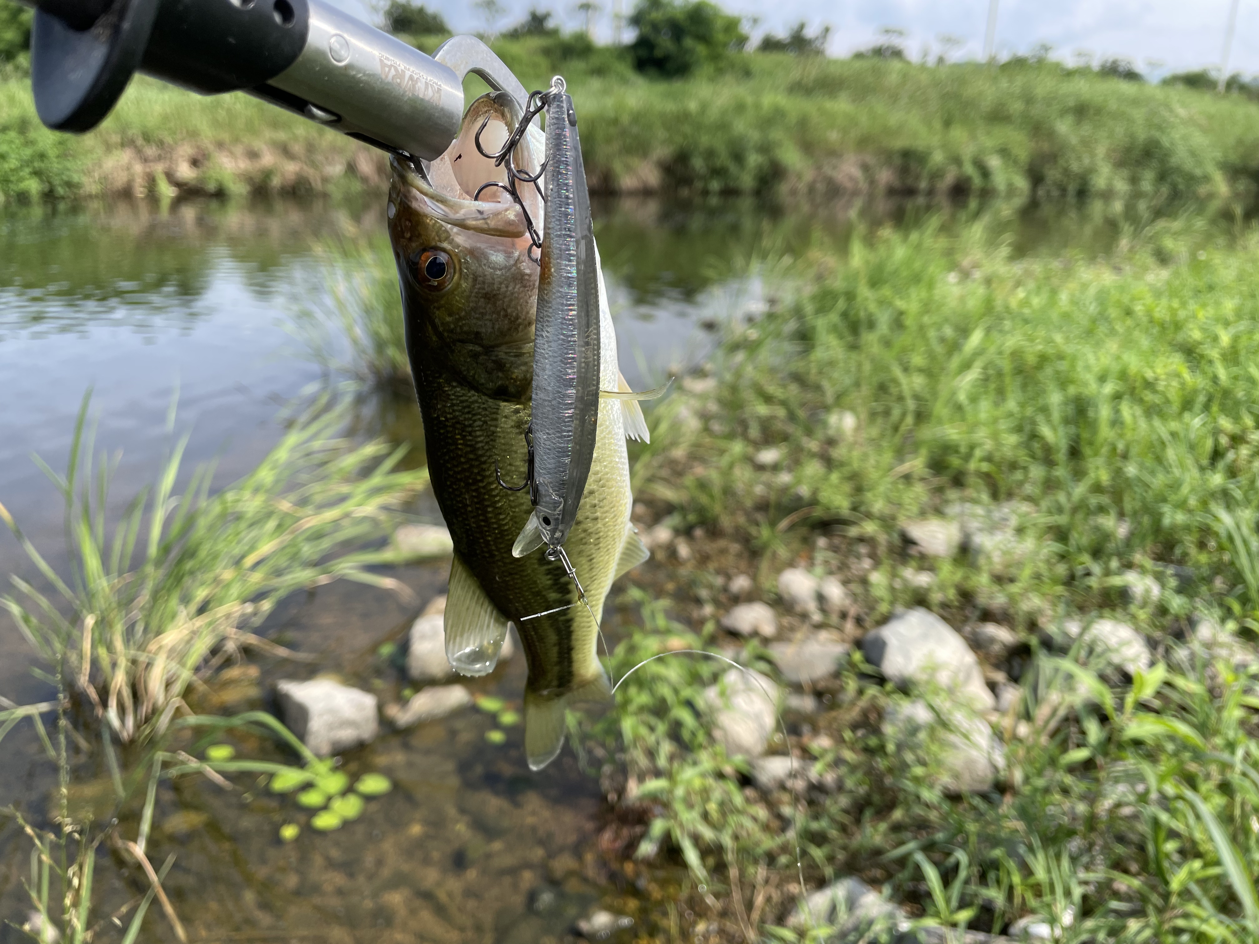 돌아 나오면서 노싱커로 보 아래쪽 수면을 긁어 짜치배스를 한 마리 더 만나고,,,