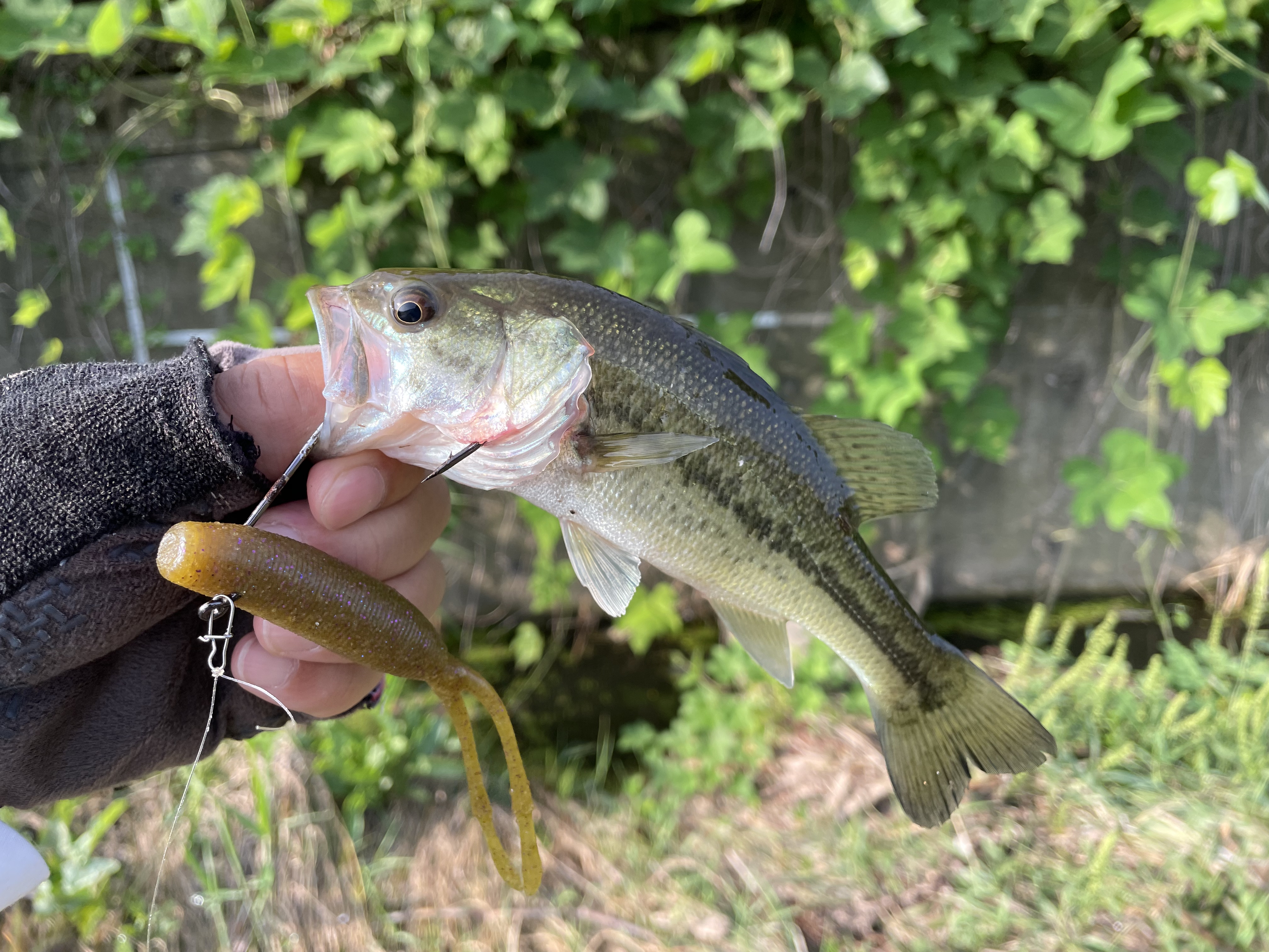 저크베이트로 교체하여 짜치배스를 한 마리 더 만나고,