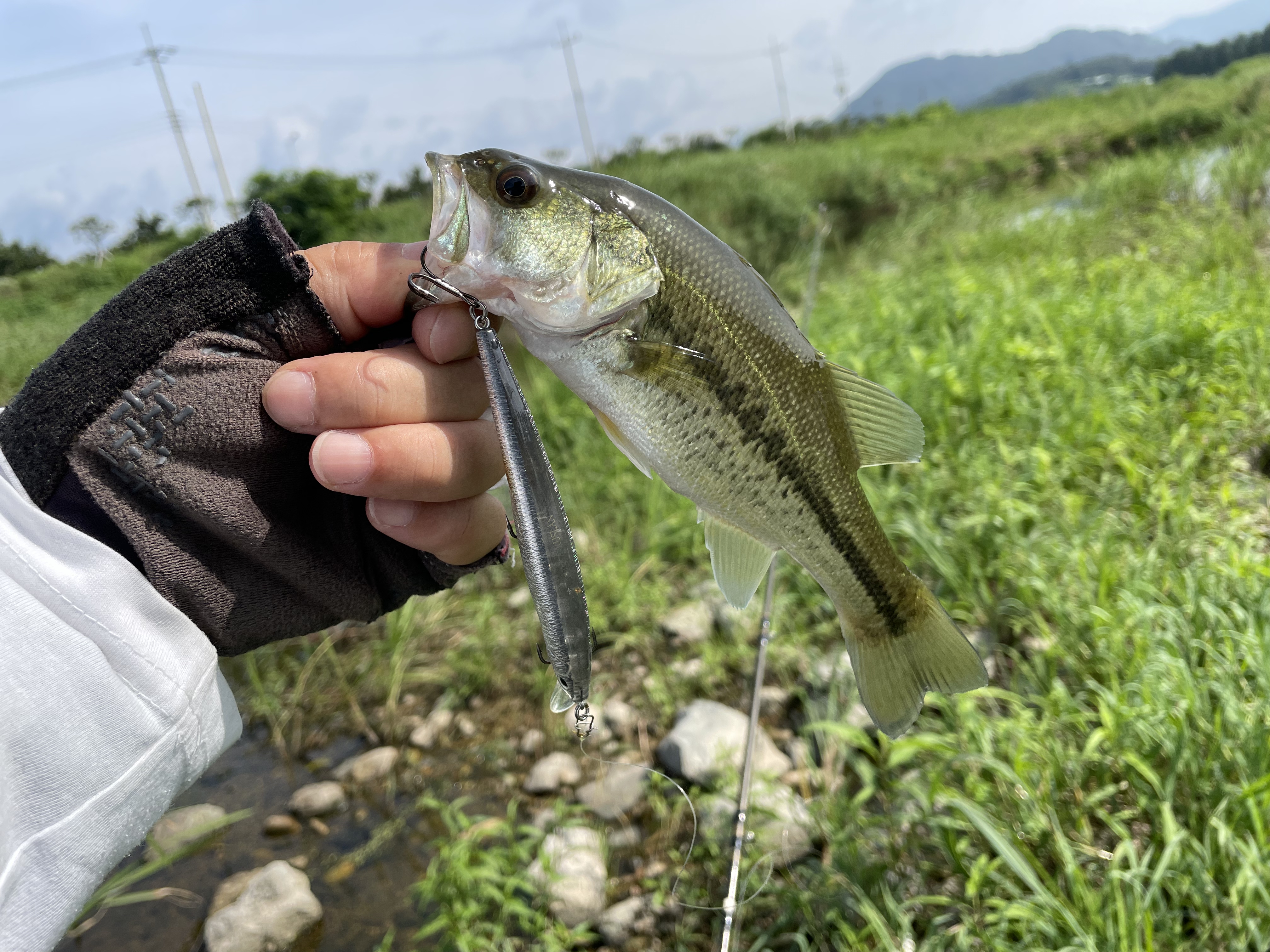보를 건너 작은 농수로가 있는 곳에서 스틱베이트를 노싱커로 교체하여 투입~